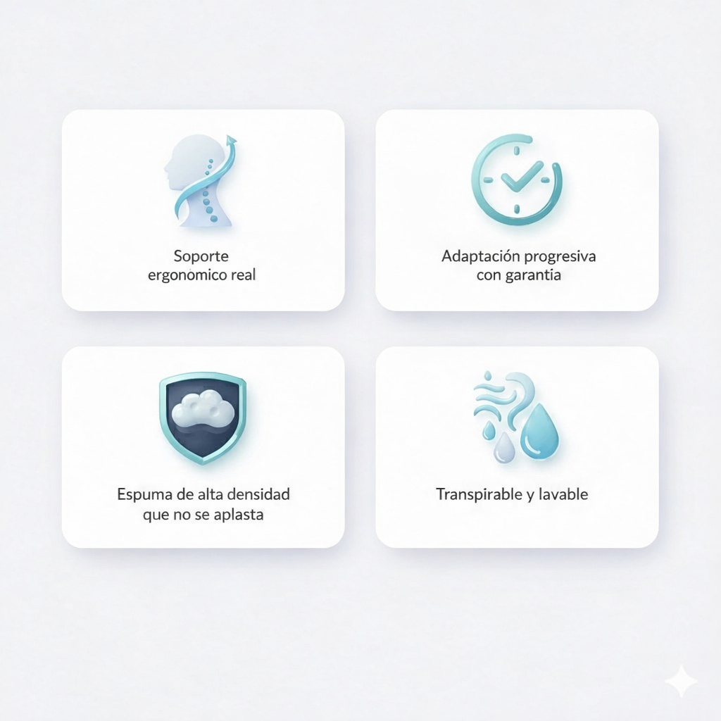No es solo una almohada cómoda. Está diseñada para sostener y acompañar tu postura noche tras noche.